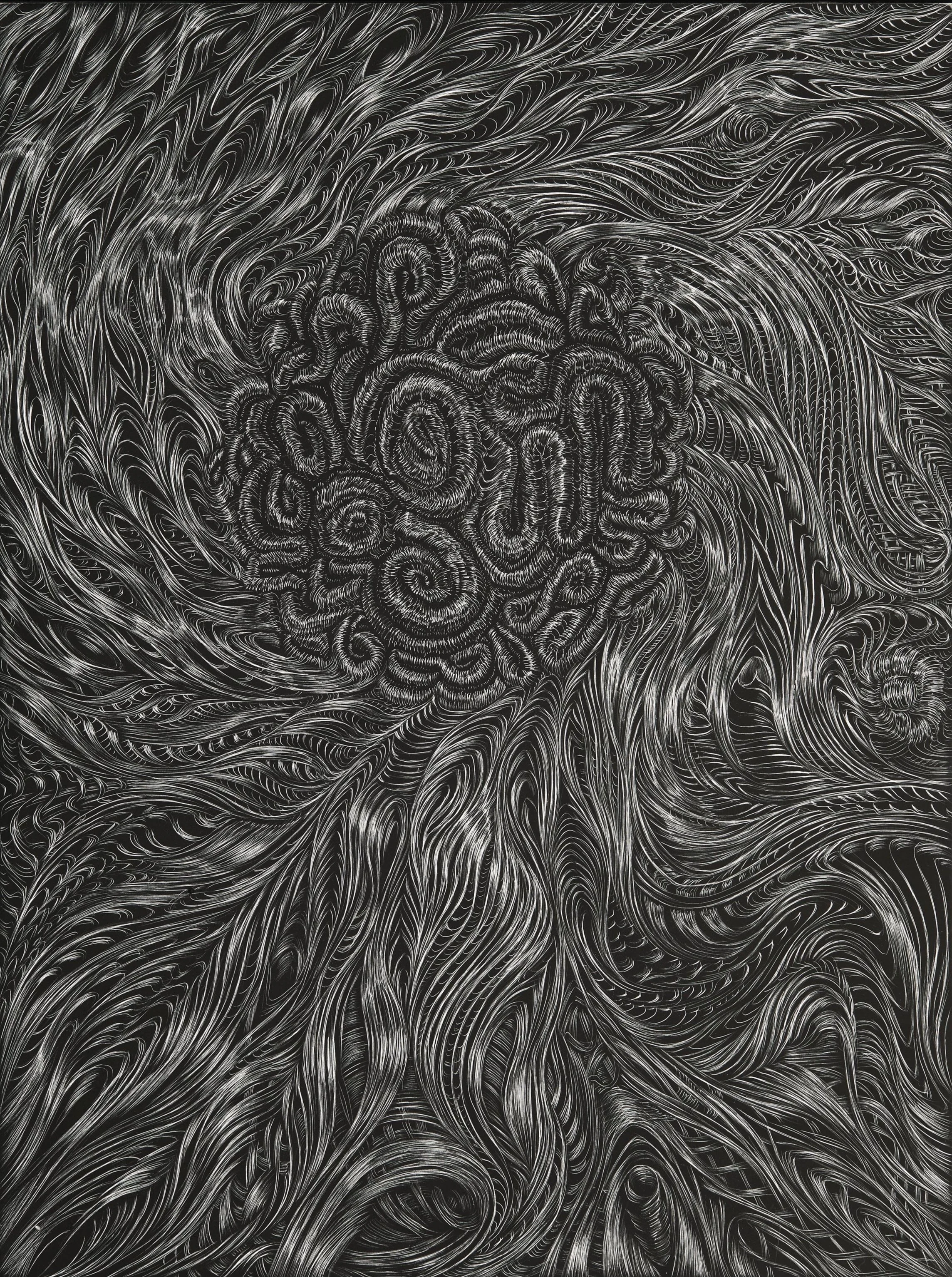Cathy Ward (b.1960) was sent, as a child, to a private convent run by the Irish order of The Sisters of Mercy. This experience had a profound and lasting effect on her and her work. After graduating from the RCA, a life changing spell in Canada was spiritually and creatively transformative, before returning to London, where bereavement altered her art again. She is recognised for her intense ethereal drawings interpreted as hair, strata, and energy pulses, with art helping her to come to terms with challenges in her life.
