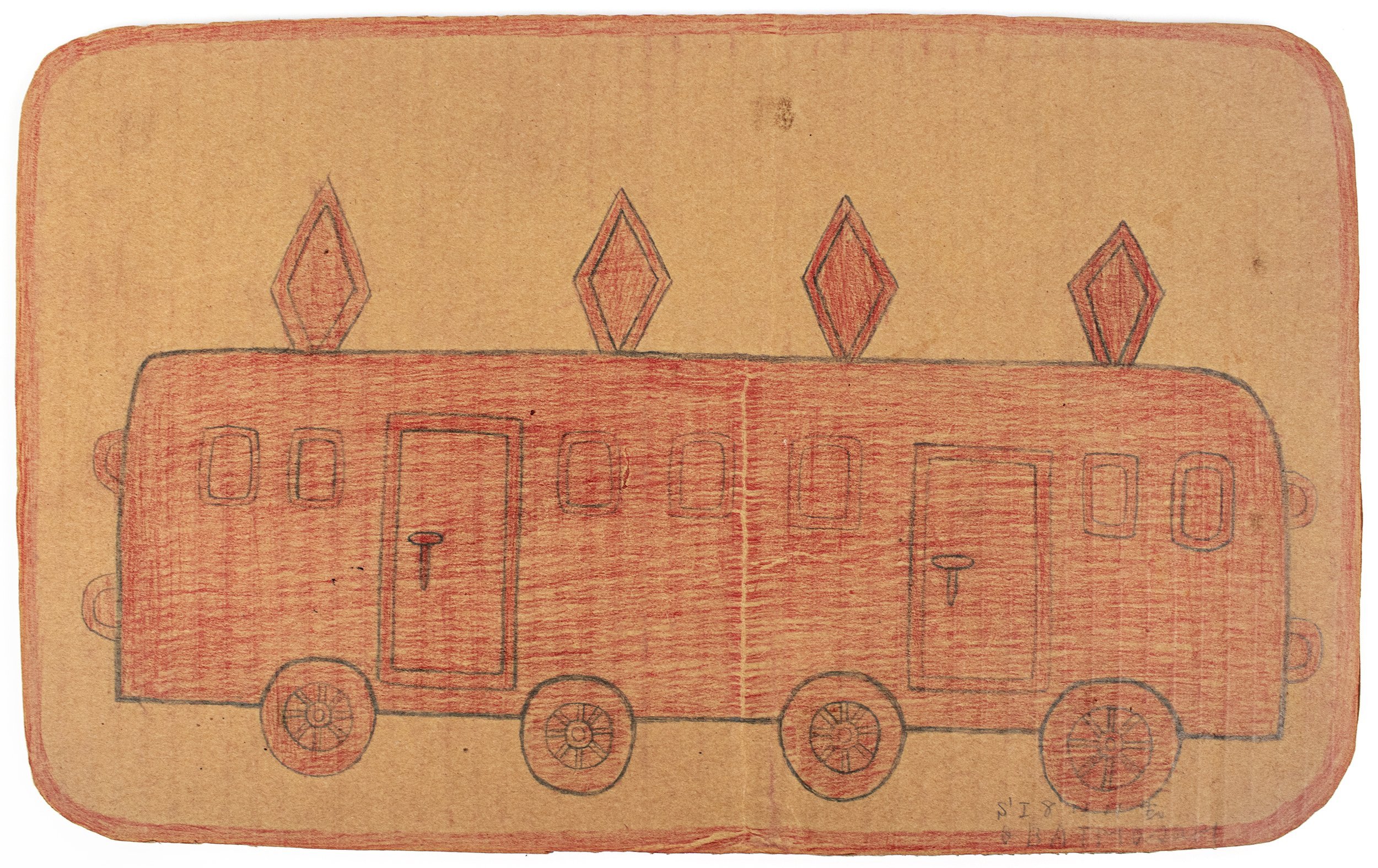 Masao Obata (1943-2010) only started drawing in his residential care facility in Japan after the age of 60. Raised by his grandmother, Obata moved around many institutions before settling at Hyogo Prefecture for a longer period of time. His strong urge to create led him to source pieces of large cardboard to draw on from the kitchens in his facility, as paper was not strong enough for him and he was concerned it would rip easily. In the facility Obata could be found night after night continuously drawing often on both sides of the cardboard, at the rate of around one work per night. He produced thousands of drawings before his passing in 2010, but many were disposed of by the facility who, in the beginning, had not recognised the artistic value of his work.