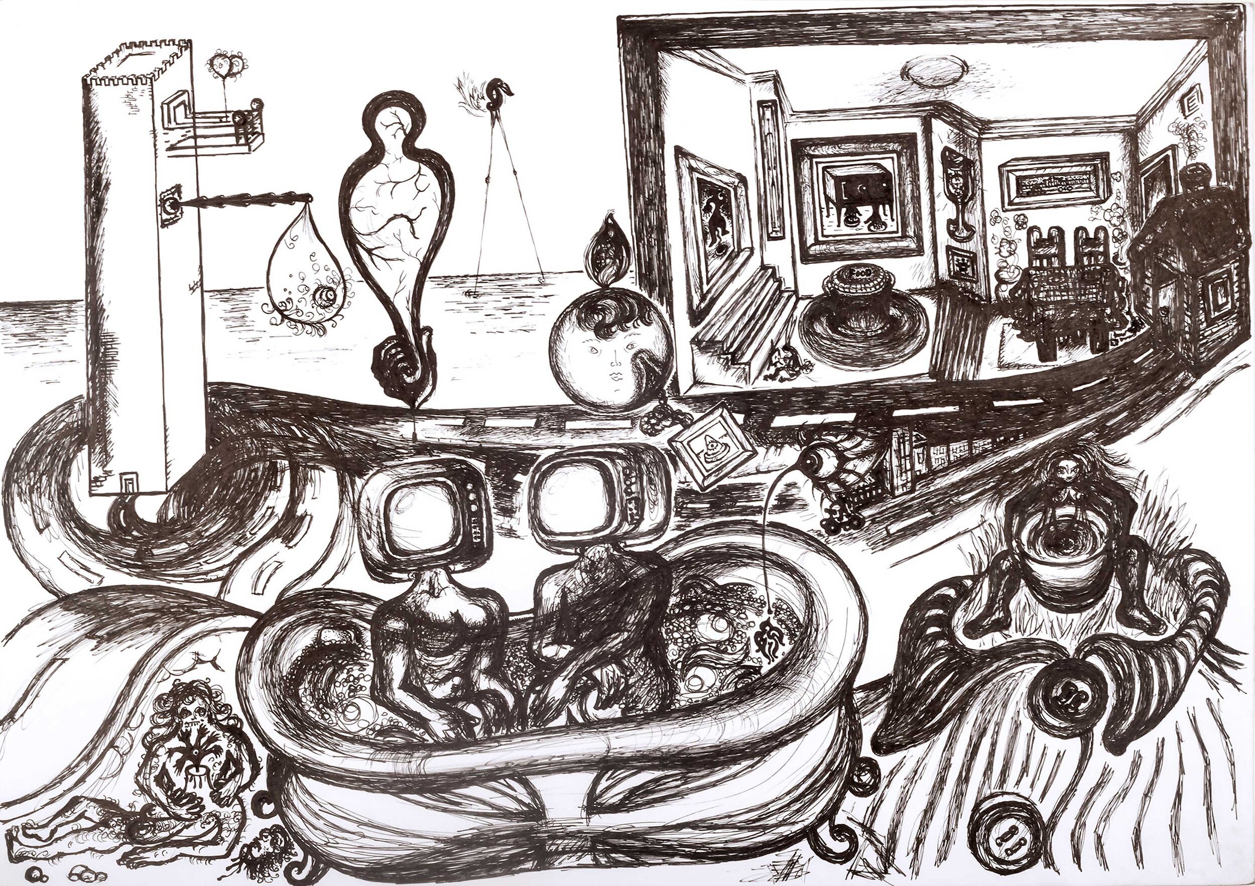 Chiefly working on paper and canvas with a range of painting and drawing materials, Jane DaVigo’s (b.1976) work is a celebration of her imagination, sense of humour and personality. A precise yet multi-faceted artist, DaVigo’s versatile oeuvre takes reference from everything spanning Matisse to Lamborghinis. Her attention to detail, skilful hand and punchy voice underpins unique windows into alternative universes, and mirrors reflecting our world chopped and screwed. DaVigo is also a writer and often uses poetic techniques in her visual art too.