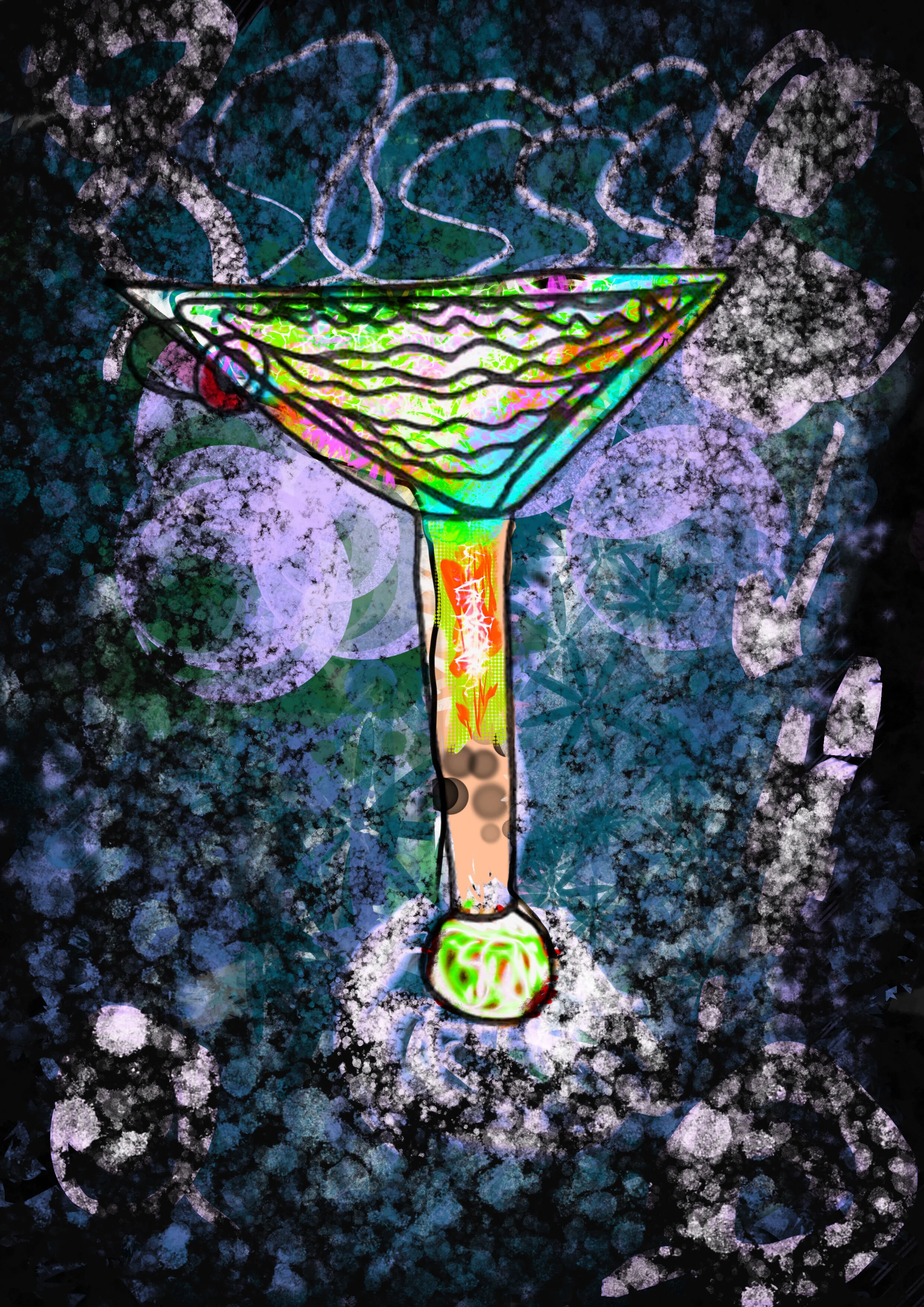 Amy Ellison, Cocktails 3, 2020. Shown on a light-box at the Grundy Art Gallery
