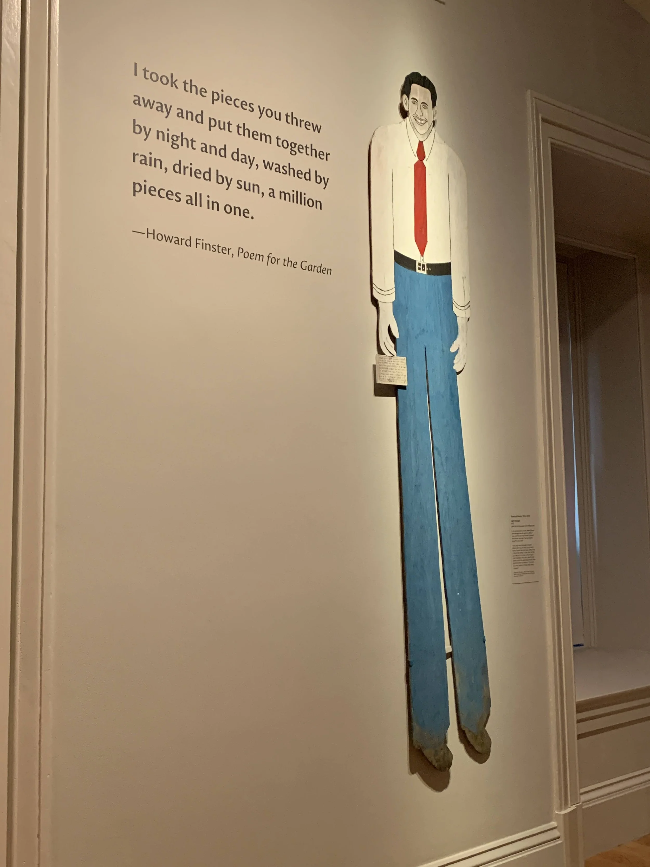 The other one that I was thinking about is a very tall Howard Finster man. It's a self-portrait. It's giant, around eight or nine feet tall with a little placard he's holding. It sort of describes how he was the only one that could make himself big in this world. And I love the bravado in it and the self-actualisation that's built into it -- like if I if I'm going to be something in this world, I'm going to have to do it myself, I'm going to have to make myself big! There's something very American about it.
