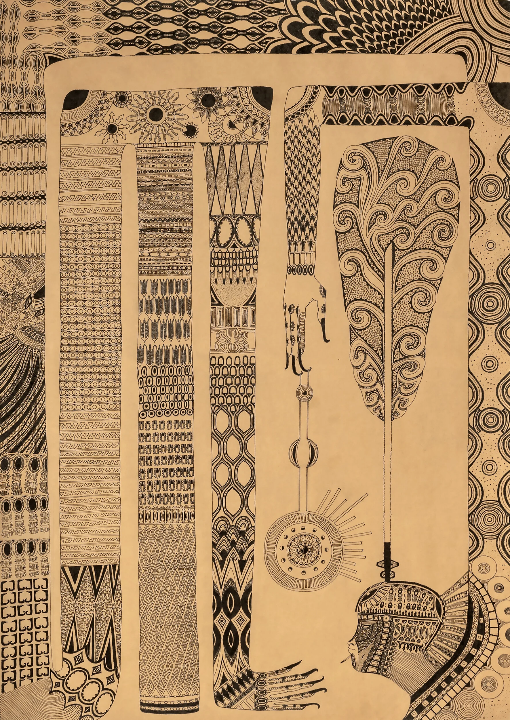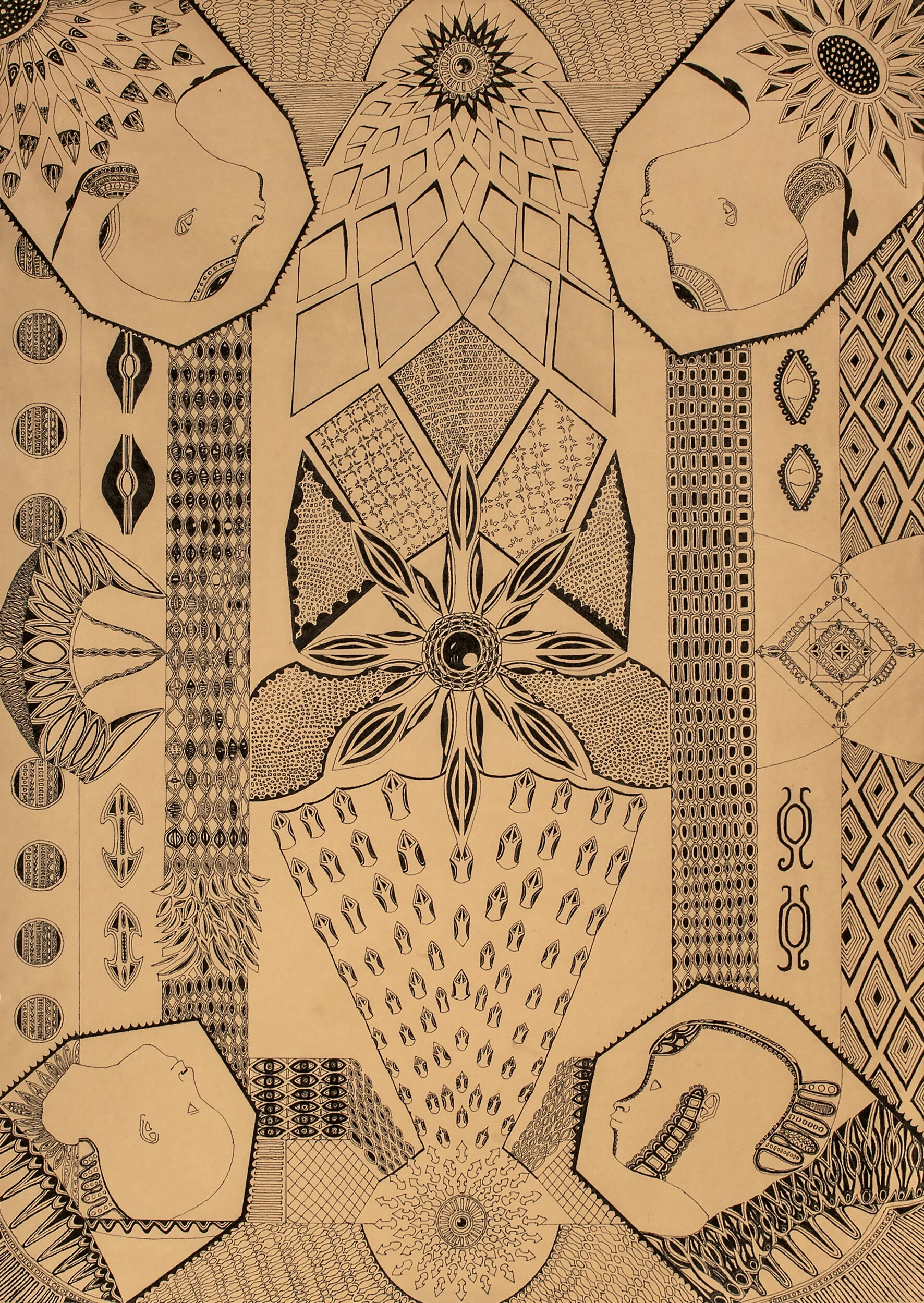 First of all, the emotion that underlies my daily life is always helpless “anger” in myself. I listen to music and draw to suppress the "anger" that I have in myself. I feel most comfortable when I'm drawing. The inspiration from the Bali images and Buddhist art is incorporated into the work, to stabilize one's own spirit. What I want to find by continuing to draw is "what exactly is my role in my life?"