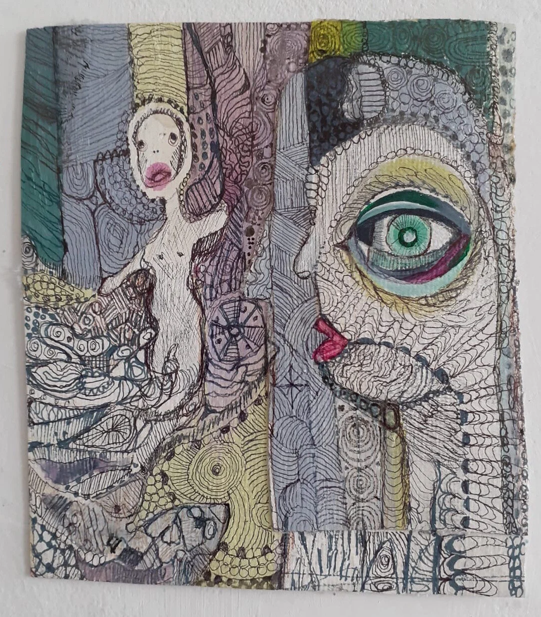 My work has gone more detailed because I do detailed work when I am anxious. So I seem to have honed in on more detailed work and I am using art as a coping strategy. I have been creating work in particular to be for sale on Instagram, so colour is coming back into things. I am also trying to go back to highly patterned work, as that was part of my training as a textile artist. So I think I am doing things that bring a sense of security back to my practice. My working hours are different now too - I tend to work later at night rather than at the beginning of the day. And due to me not being in work at the moment, I have more of a focus on my own work.
