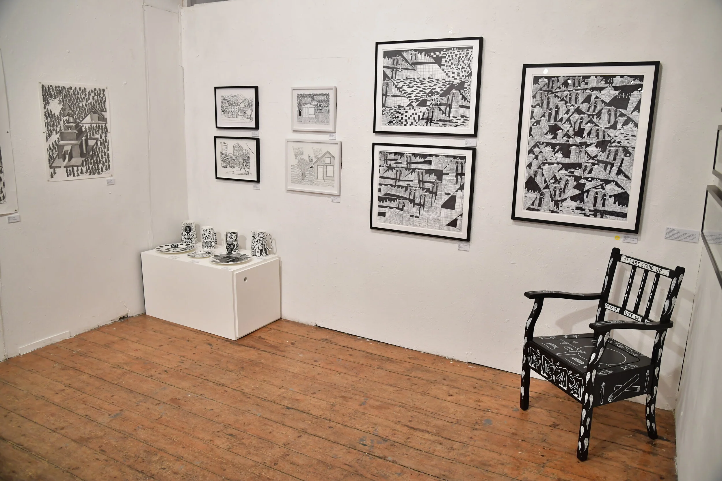 Monochromatic Minds: Lines of Revelation was the largest ever monochrome exhibition featuring self-taught, disabled and outsider artists work. It featured 61 artists from around the world, working in a variety of mediums including drawing, textiles and ceramics. Organised by the Jennifer Lauren Gallery in early 2020, it was reviewed by Professor Colin Rhodes in issue #105 of Raw Vision Magazine in Spring 2020.