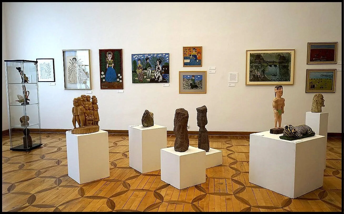 A view of the exhibition "From insita to art brut" of Pavel Konečný's collection in the Slovak Gallery of Artists in Spišská Nová Ves, 2017