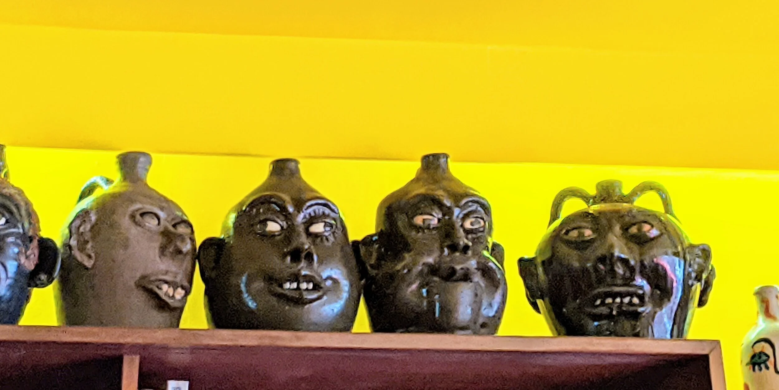 We used to drive up to the North Georgia Mountains to visit artists like Lanier Meaders. He came from a long line of folk potters. He’s long dead now, but he was such a nice man with a kiln and a workshop out in the boondocks. We would drive up there with our toddler son, and just spend time with him. He made face jugs - a southern folk tradition. We bought quite a few of them which are still in my houses now. The first one we bought cost $5! He had a bone yard with stuff that didn’t please him and we nabbed pieces from there too. It was very primitive and exciting. The face jugs have ugly, grotesque faces. They were so affordable at the time, but now I see them going for lots of money. We didn’t buy them as an investment, but because we loved him and loved the jugs. Howard Finster was out there too, but I didn’t get any of his works. I learnt later this art was Outsider Art. We saw it as folk art; and it was exciting day trips out for us.