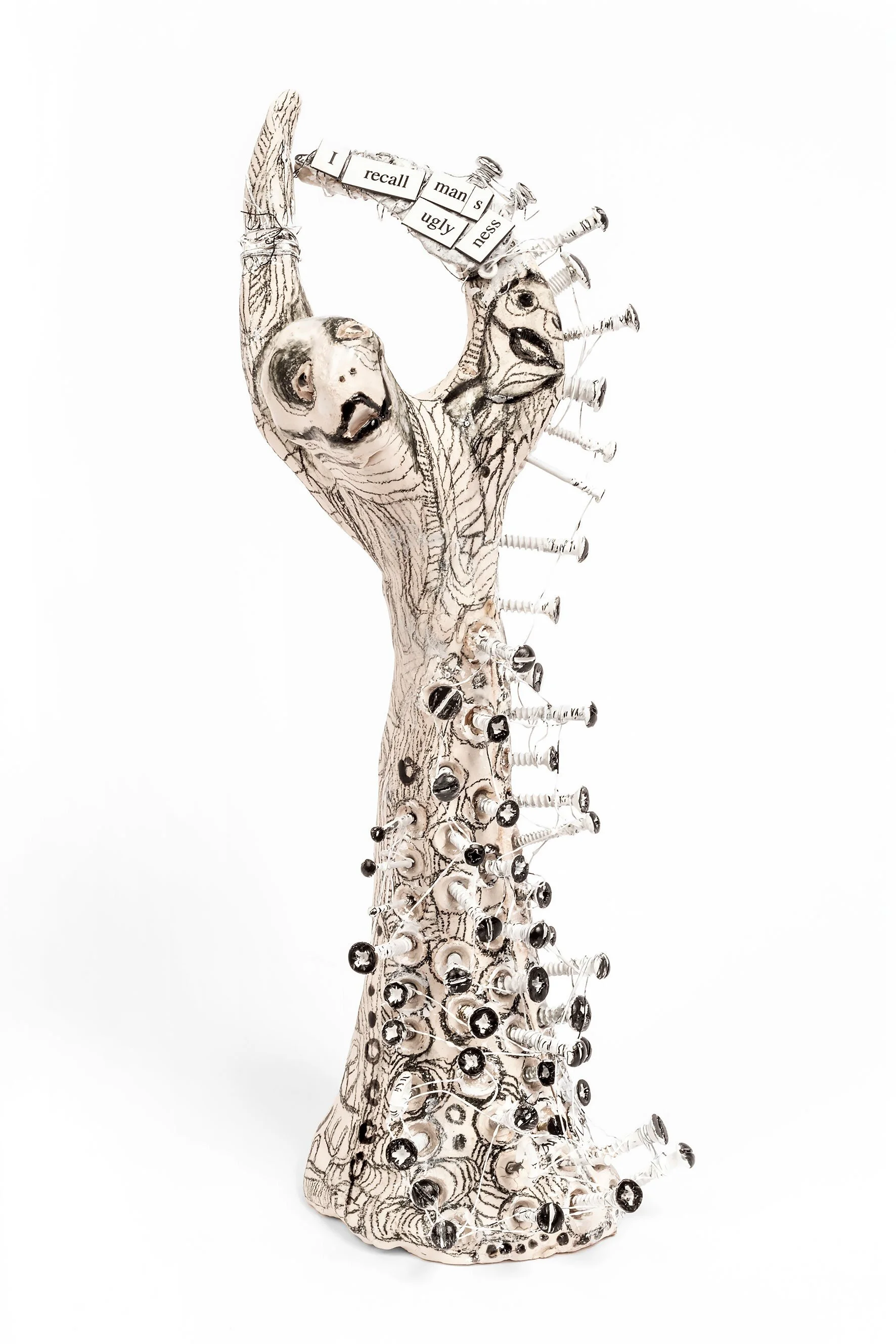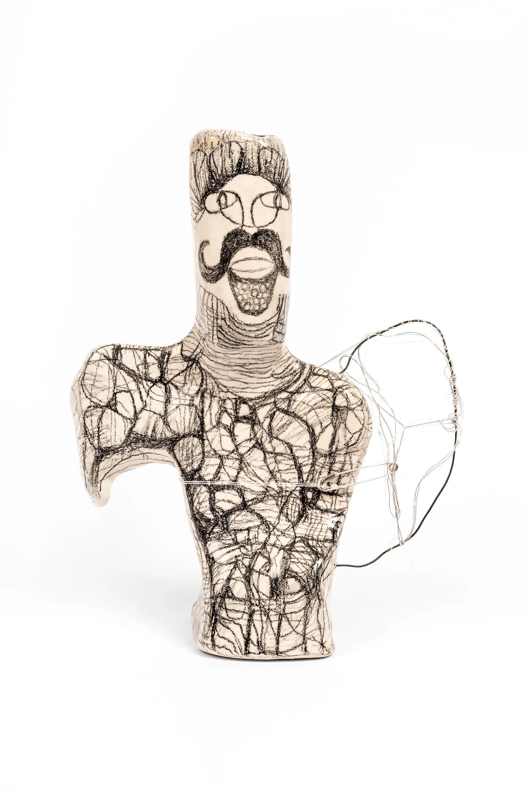 “I’ve had minimum training in ceramics, so when I was asked to co-facilitate OT (occupational therapy) pottery groups, it put me in a similar position as the patients I was helping. I learnt on the job from patients and other pottery teachers. This way of working has been a departure for me, in my approach to ways of doing things, alongside developing a relationship with clay. I find clay to be malleable, tactile and ancient - something from earth, which holds its own memories as well as absorbing yours. Clay can hold changes of mind and be remolded into forms not originally intended. Mistakes can be changed into future successful pieces. I started making maquettes, which later became representations of my emotions in a tangible way - I now describe these as embodiments. Making these is a great way for me to experiment and leave myself open to the process… just like the spontaneity of a child playing creatively in the moment.”